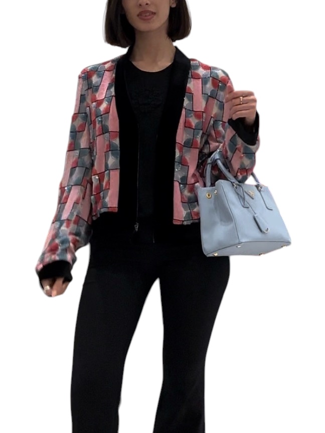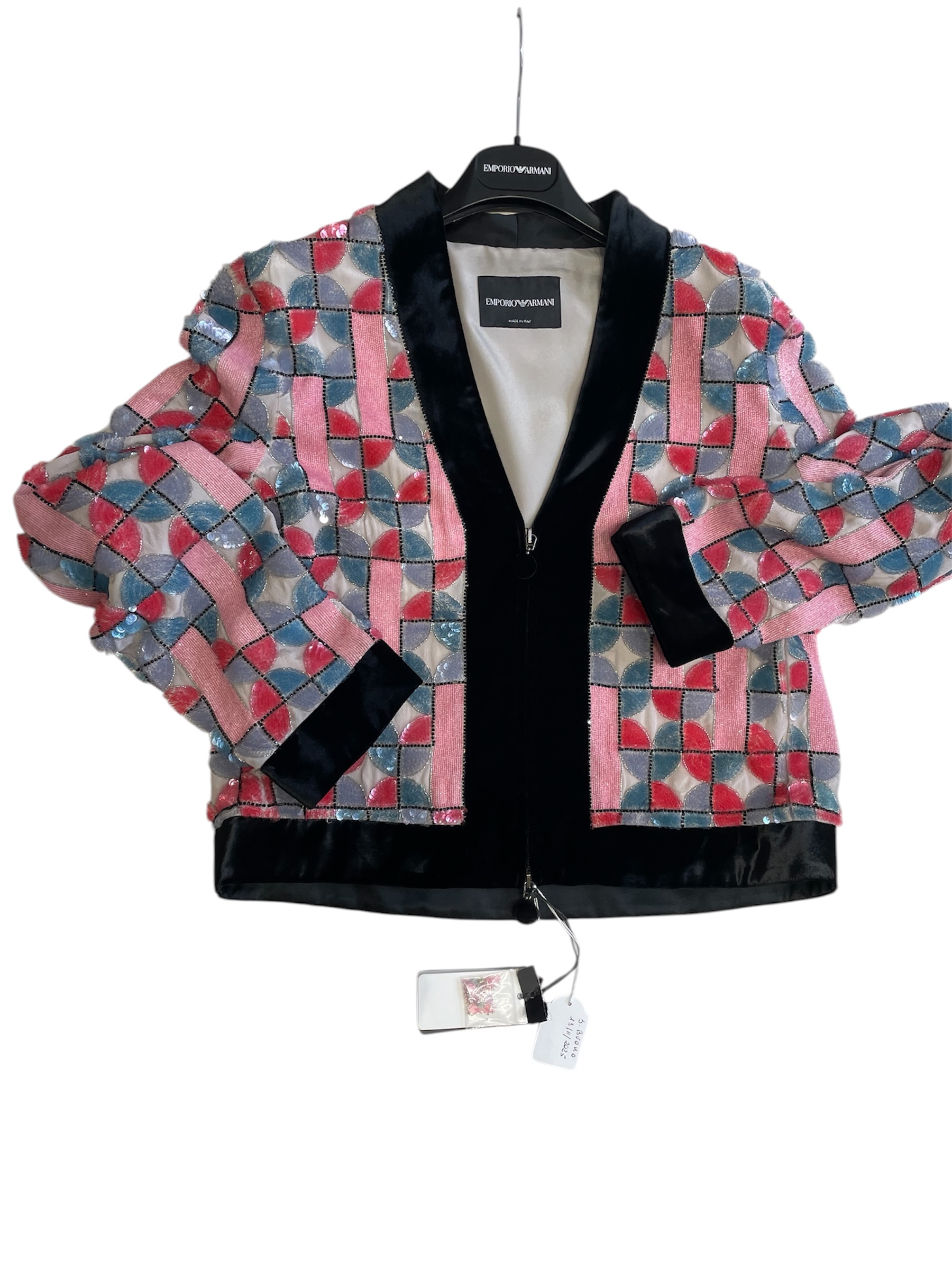 Emporio Armani – Giacca Bomber Ricamata con Paillettes e Perline – Taglia 44.