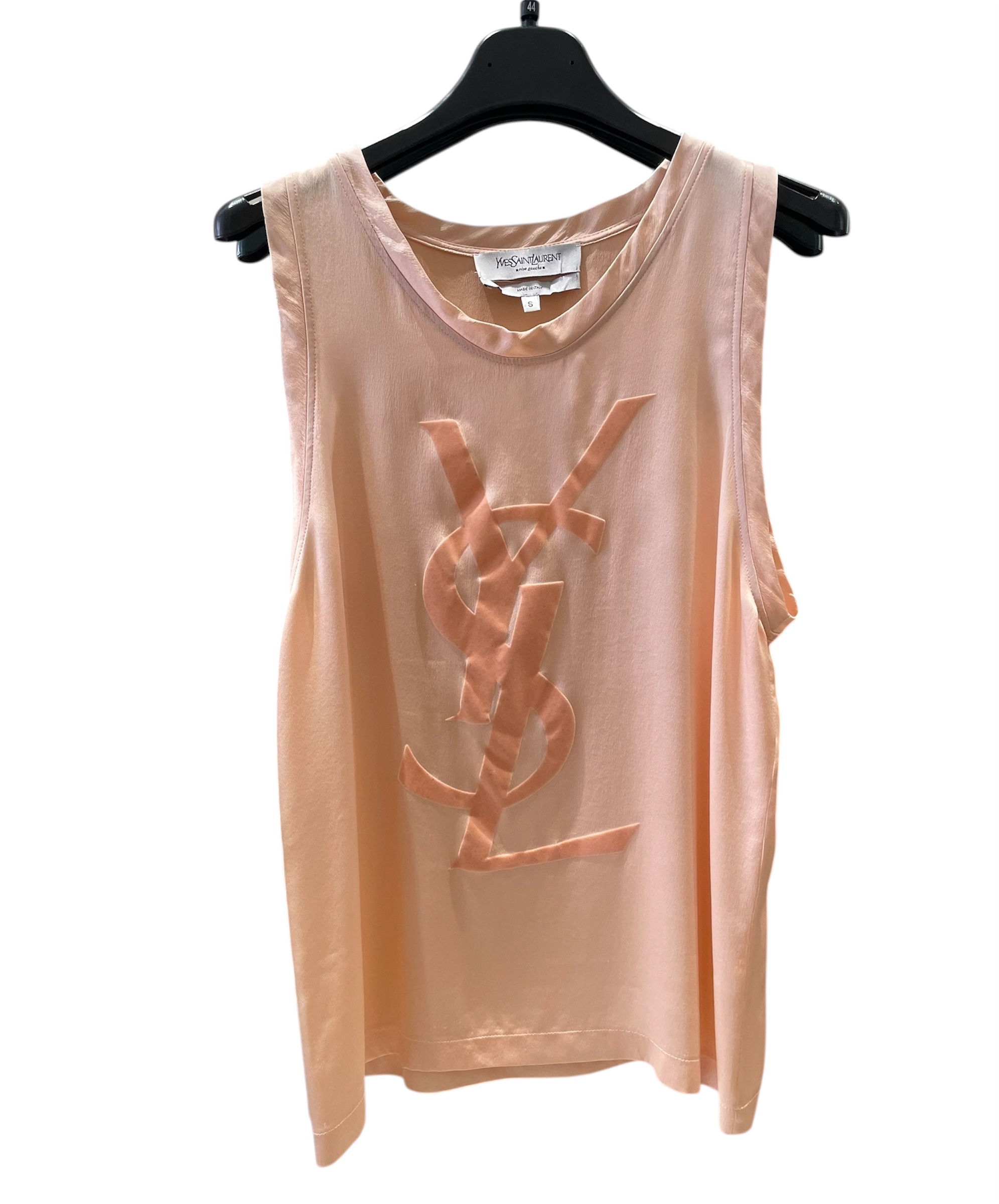 VINTAGE Yves Saint Laurent Rive Gauche – Top in Seta con Monogramma YSL – Taglia S