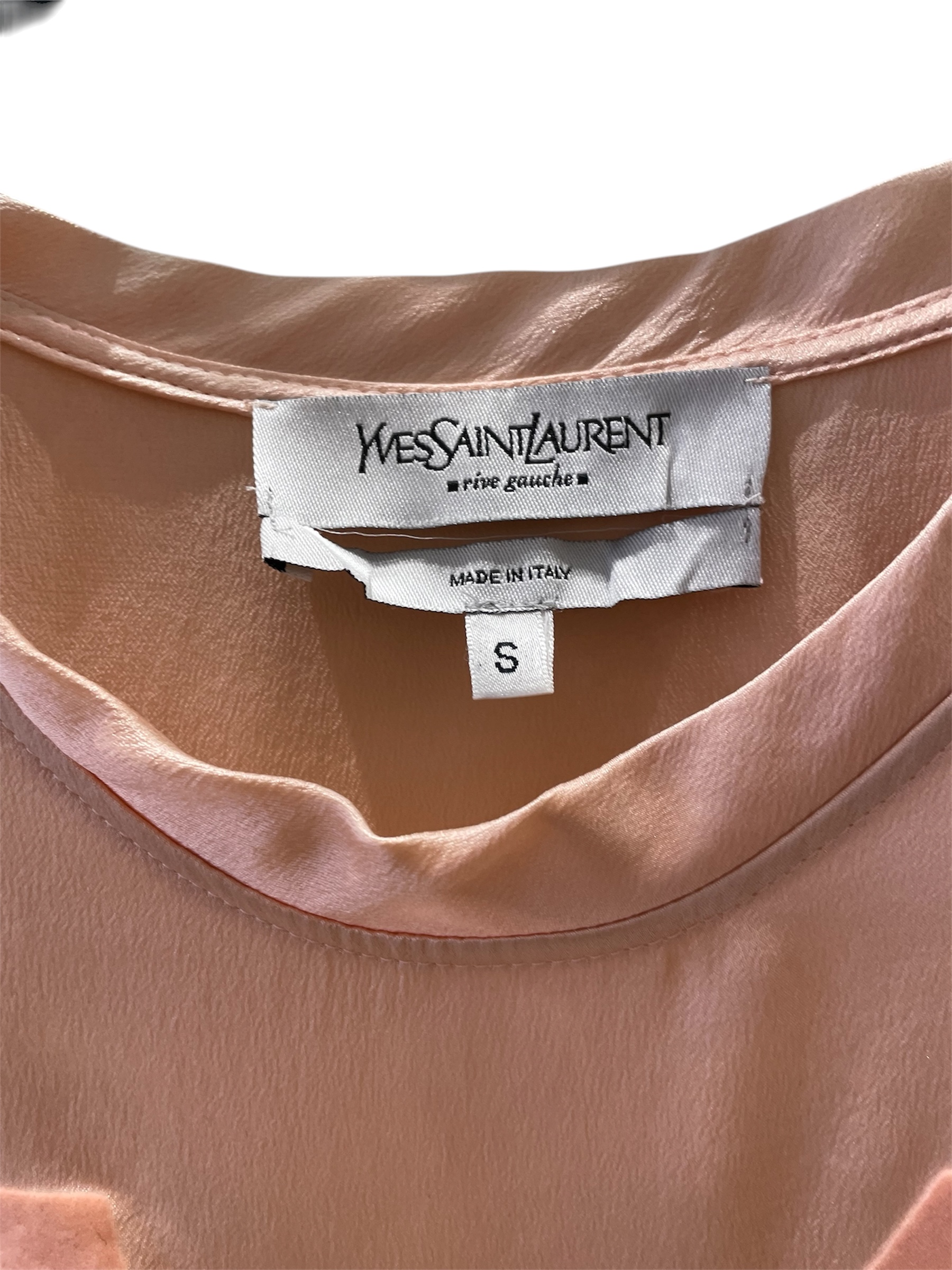 Dettagli: Taglia S · Made in Italy · Seta · Vintage Rive Gauche · Condizione: ottimo stato con minima imperfezione sul retro (visibile nelle foto).