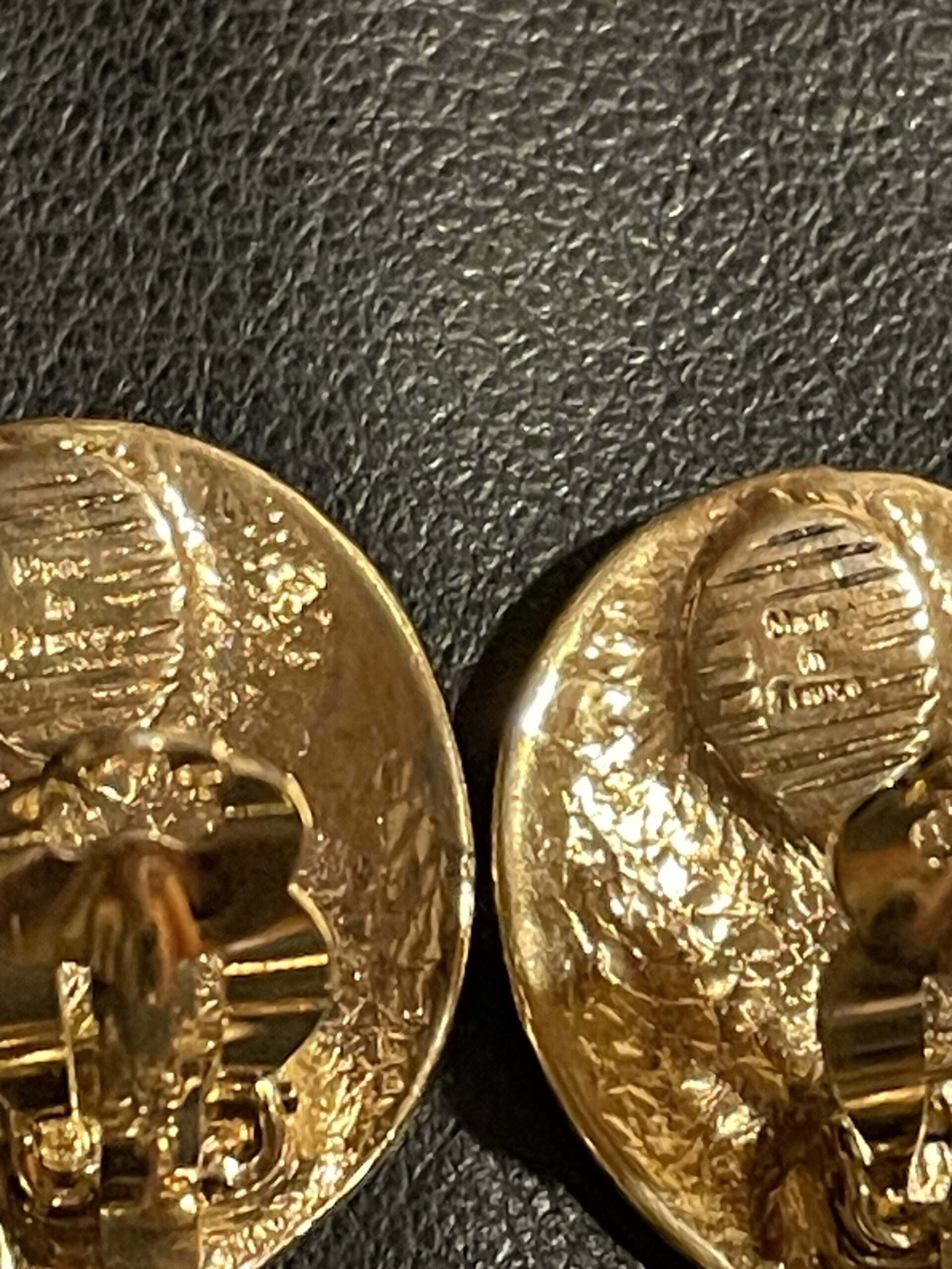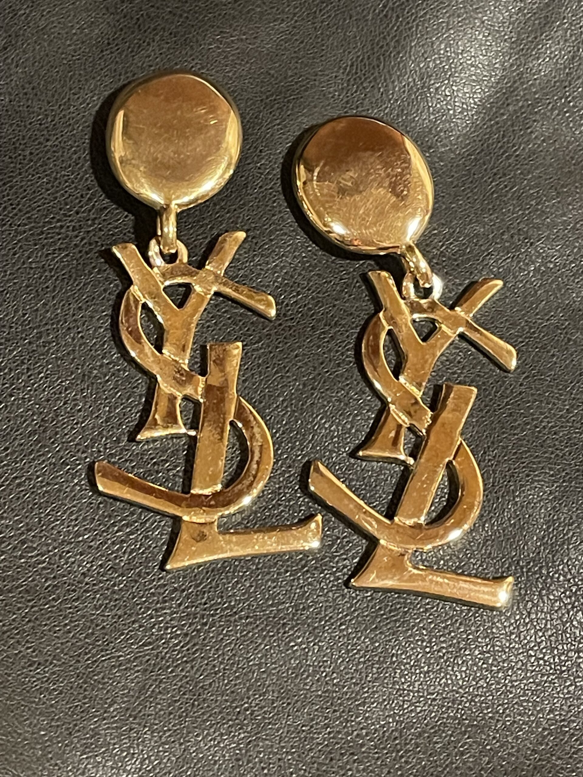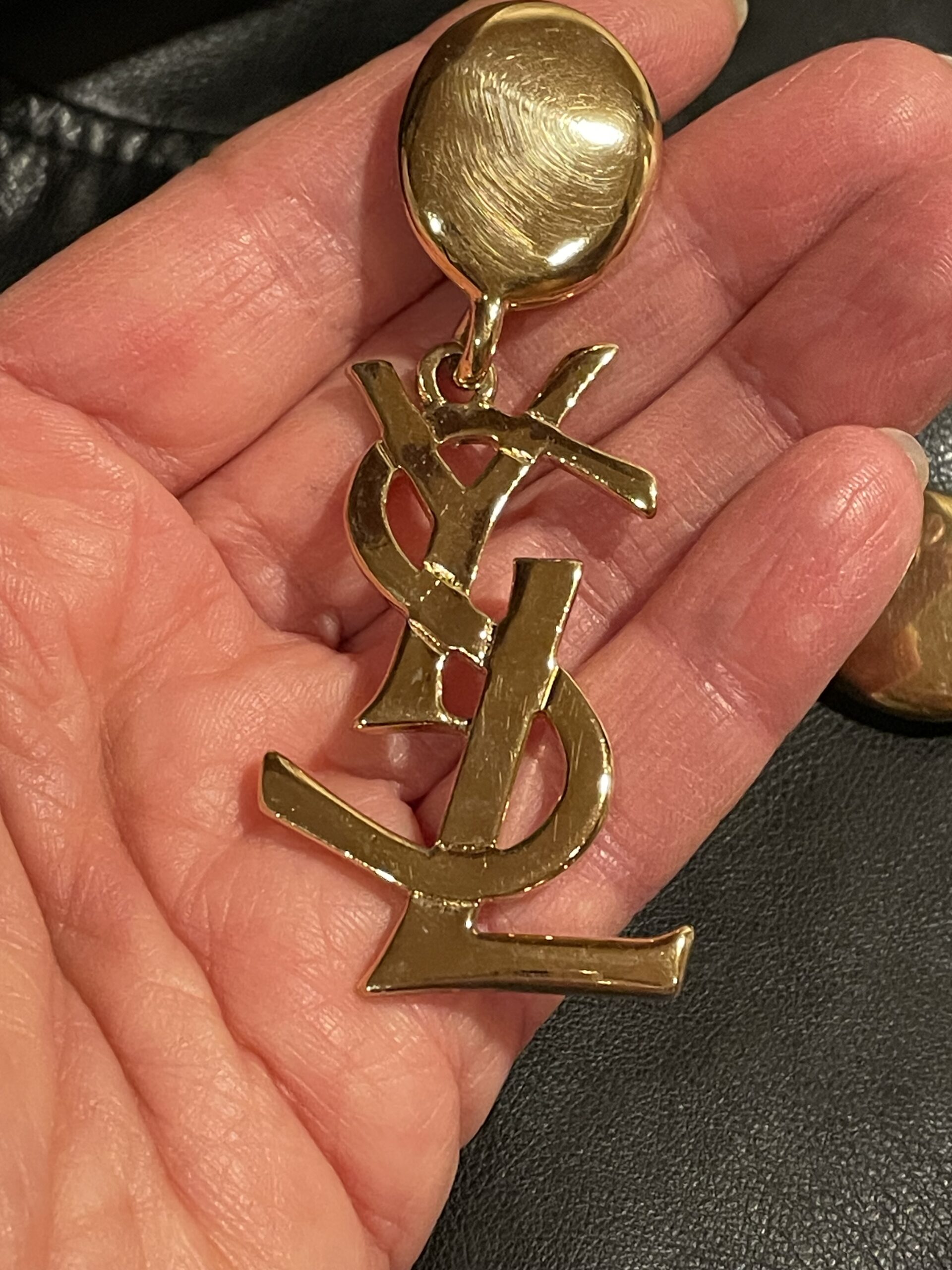 Vintage Yves Saint Laurent Orecchini Logo Oversize placcati in oro. Firmato sul retro. Iconici e rari, questi orecchini sono stati visti indossati da Kim Jones (Sex and the City). Misure: Altezza: 3,34 pollici (8,5 cm) Larghezza: 1,37 pollici (3,5 cm) Peso per orecchino: 17 grammi. Gli orecchini sono in ottime condizioni; i minimi graffi, mostrati nelle immagini, sono poco visibili.
